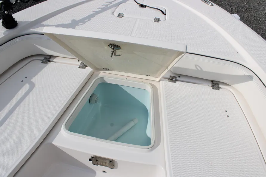 - Twin Aft Insulated Livewell/Fish Boxes (30 gallons) with Specific Pumps, LED lighting, Blue gelcoat Finish, Adjustable Flow Valves and Plexiglass Divider